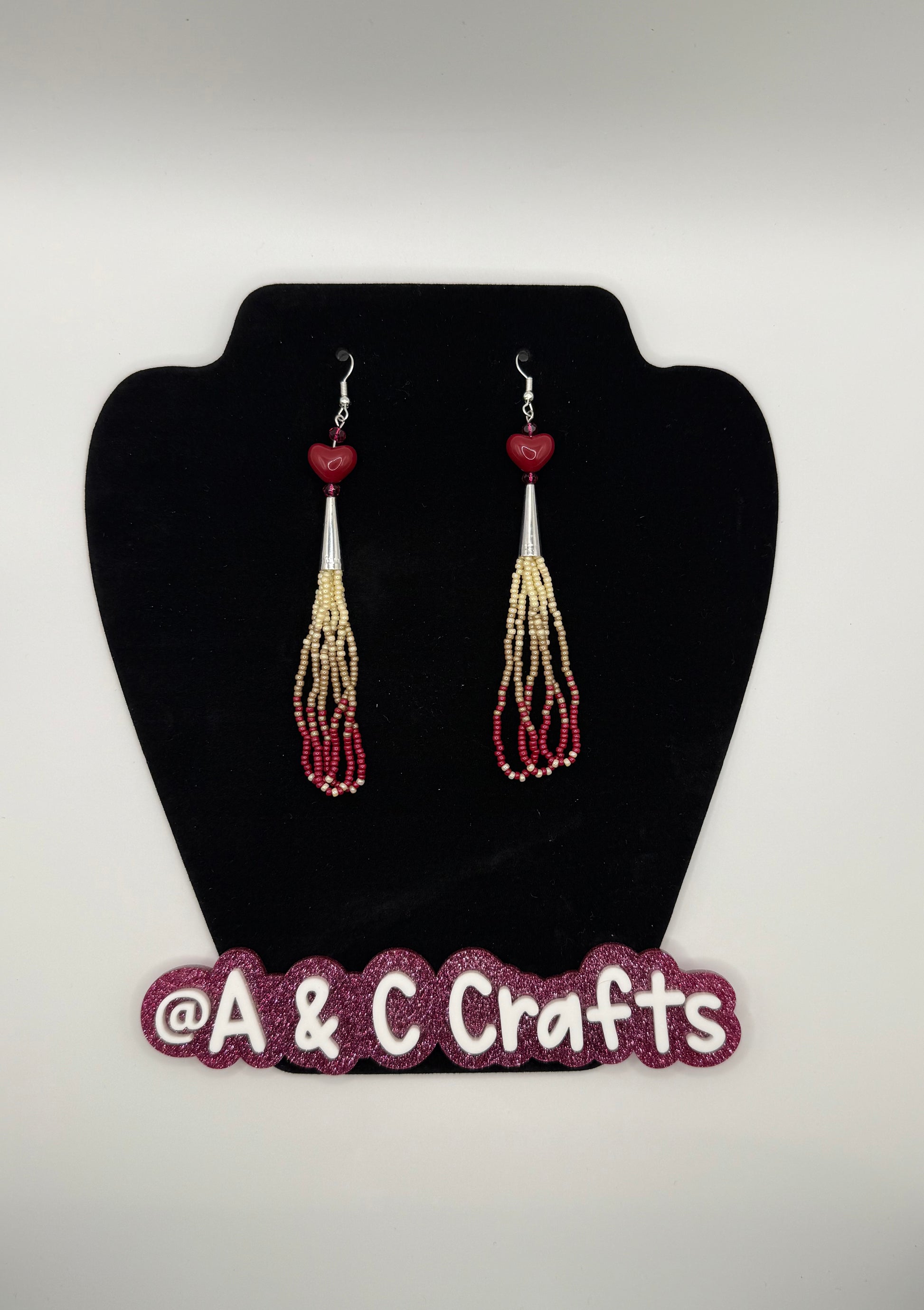 Fringe earrings with maroon hearts